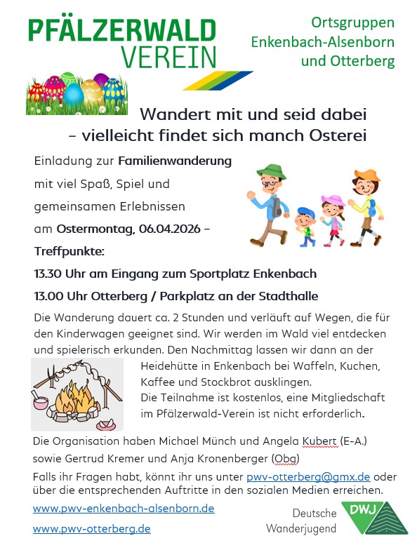 06.04.2026, Mo., Familienwanderung ab der Heidehütte Enkenbach